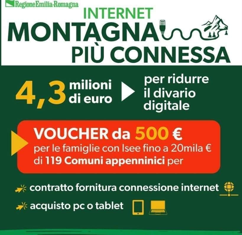 Una iniziativa per cui la Regione Emilia-Romagna rende disponibili più di 4 milioni di euro nell’ambito del Piano nazionale voucher lanciato dal Comitato banda ultra larga (Cobul) insieme alle Regioni.